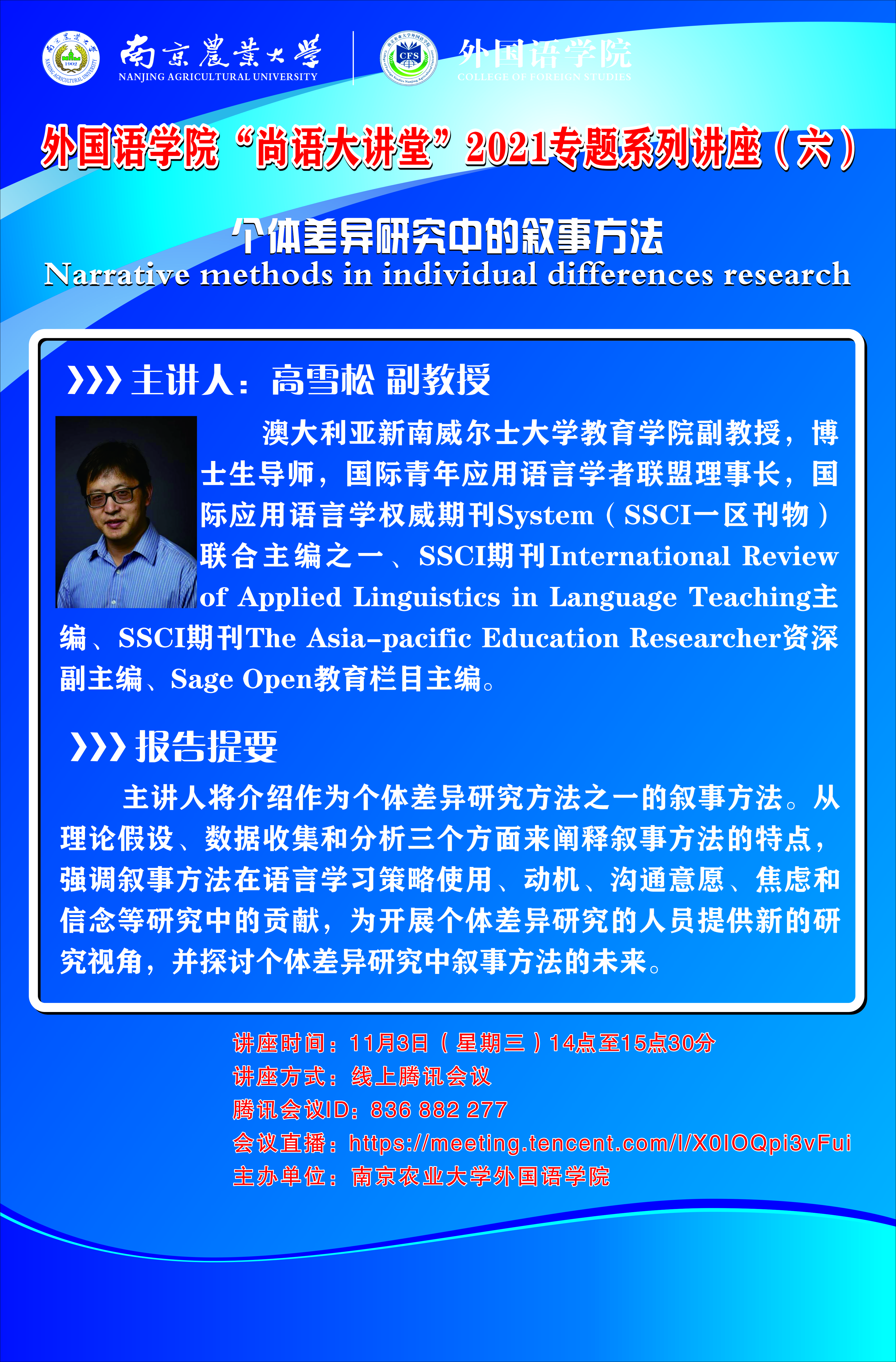 综合楼三楼 025-84395755(院办) 025-84396722(学生办) 邮编:210095 地址:南京卫岗1号