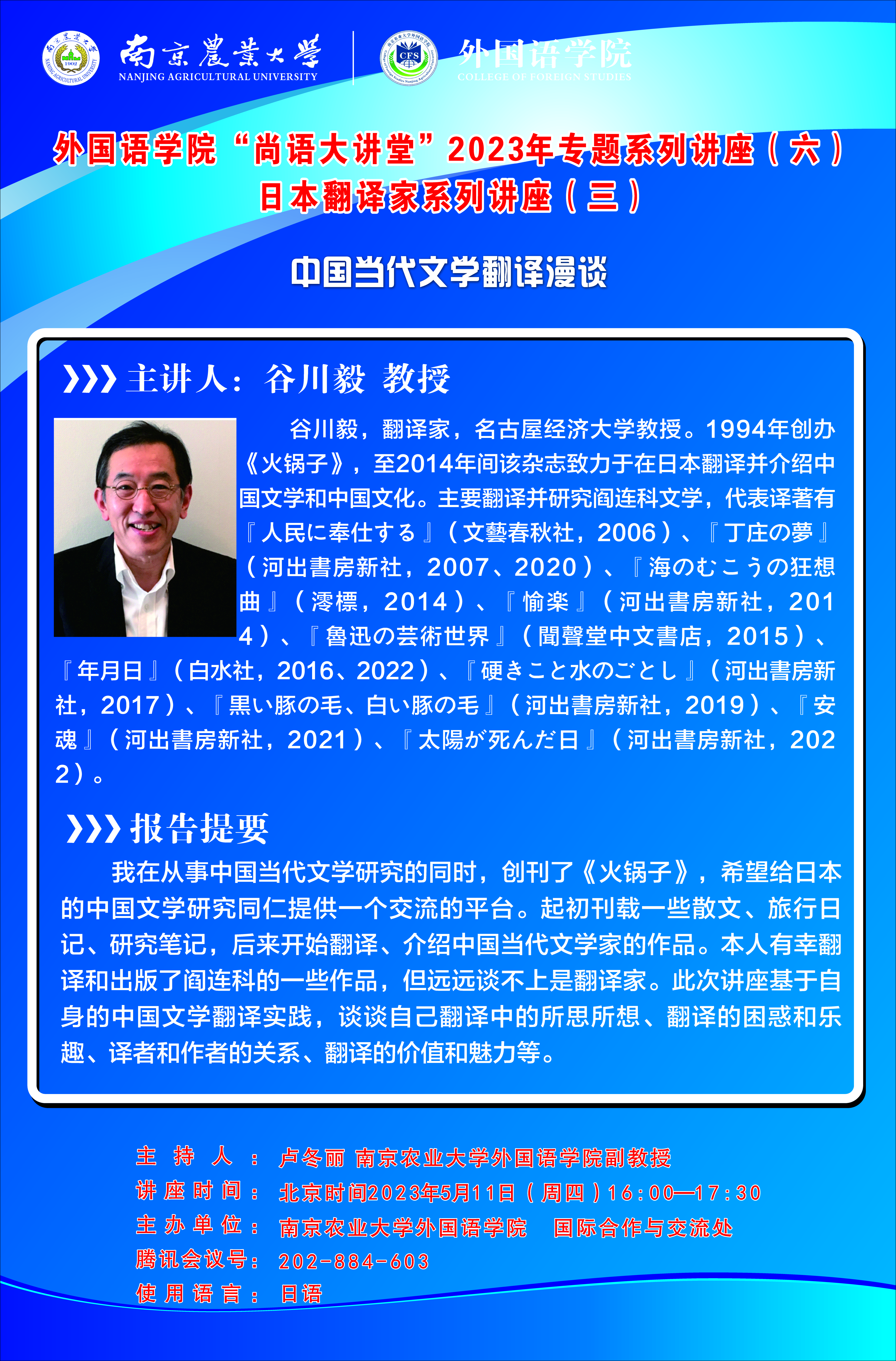 上一篇:吃瓜网 “尚语大讲堂”2023年专题系列讲座(七) 日本翻译家系列讲座(四)
